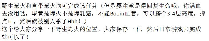 7.在不同局比赛中使用篝火回复生命(0/3)(奖励500经验)