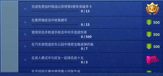 2.完成免费加时挑战以获得第8赛季英雄季卡(0/13)(奖励第8赛季英雄季卡)
