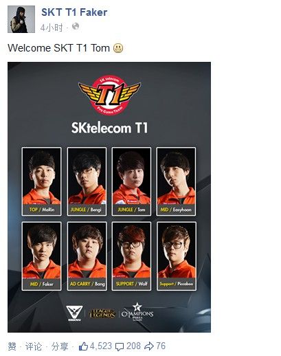 LOLSKT招入新打野 Faker再也不怕笨鸡Gank
