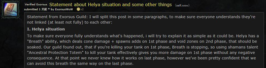 近日,《魔兽世界》顶尖PVE公会Exorsus发布公告,表示海拉就算正常打也可以过,同时反映了橙装机制存在的。为了方便解释,我将这篇文章分为几个部分,以确保你们能够理解这几者之间没有联系(或者至少关系不大)。 海拉的bug 简单的说,海拉有个吐息技能,这个技能会在boss面前的一个锥形范围内造成伤害,并且boss施法后,吐息范围内在P1会刷新小软,P3会刷新紫圈。我们在开荒过程中发现,如果坦克P1吃到吐息并死了,BOSS马上会停止释放吐息(注:字面上解读,3K3的意思是,P1让坦克死是为了打断boss引导不刷新小软,这样可以压DPS,而且P1放生坦克后boss下次吐息该吐还是吐)。所以我们在吐息前让萨满插个图腾来放生并复活坦克,以此压榨P1的dps。此时我们虽然已经感觉P3也可以这样规避吐息,但是还不确定这个机制在P3有没有用。 到这里,我觉得你们中的一些人肯定会问:“为啥你们这么干?这不明显是个漏洞么,你们是在通过让坦克自杀的方式来完全绕过boss技能。”我们的回答是否定的,因为到目前为止,我觉得我们做的事和暴雪认可的M阿克蒙德水晶放生坦克战术没有本质区别。但进了P3后,问题来了,不知道为啥,我们放生了第一次吐息后,发现海拉再也不吐息了。这明显就成了大幅简化boss战难度的一个BUG(而且这个bug在上周H模式开放后已经被很多公会上报了,BLZ却无动于衷)。所以这时候我们有两条路走:完全放弃我们的P1放生战术重新开荒,或者继续干(因为blz即使改成P3放生T后后面吐息继续出,我们也能通过萨满图腾和小德战复让T每次吐息都死一次来打断施法,以规避这个技能)。讲到这里,你们应该已经知道我们的选择了。 再谈谈暴雪对bug态度的前后不一,最近的3个版本的最后boss都有一些“小窍门”能让他们变的更简单,甚至让整个阶段从地狱难度变白送:1)M黑手P3武僧T跳楼,以让击飞不出圈,世界第四第五都是这么打的,甚至还放了视频,暴雪没有对此采取任何措施;2)M阿克蒙德隐藏阶段的混沌水晶,同样是让T去死,这样全团人就都不用转火了,省了很多dps,世界前五甚至前十的公会都是这么打的,暴雪仍然没采取任何措施。 这一部分的最后是我们成功击杀海拉那把的战斗日志——给那些质疑我们这个boss击杀的正当性的人看的。boss倒地的时候,我们还有3个战复可以用,还有萨满的图腾(加一起足够覆盖整个P3的所有吐息)。如果这场战斗再来一次,即使P3每次boss都正常吐息,我100%确定,结果也不会有任何的改变。 橙装 我100%确定这是目前所有wower都正在面对的东西,我想就此向blz提几个问题,因为这玩意给大部分玩家群体带来的只有越来越多的挫败感。 1)橙装设计,目前橙装分为通用橙和核心橙,橙与橙之间极其不平衡。人们都想要核心橙,通用橙则无人问津。值得一提的是,也有很多专精的核心橙被设计的很垃圾,提升微乎其微。这个问题的解决办法很简单:让所有的橙都变成通用橙那样,赋予你一些有趣的额外的能力,而不是能大幅提升你的DPS/HPS。 2)4橙软上限,我知道设计师已经多次宣称根本不存在一个软上限,但这玩意在游戏里确实存在!确实有部分玩家有超过5个的橙装,但我敢保证他们大部分都在很早前,那个让出了一个橙第二个就更好出的防脸黑BUG还没被修复时获取过橙装。事实上,我们有人橙装数量一直停留在4,刷了1340次大秘境但再也没出过。这个软上限导致了一个非常愚蠢的结果,很多(包括我们公会的)团员被逼着无限刷本。如果你已经刷出了4橙但是都是通用鞋子项链?如果你火法出了四个好橙但是现在火法被砍废了要转奥?如果你正好没出那个对你提升最大的橙? 解决办法只有一个:退回人物界面建立小号,升级到110再刷,并且向上帝祈祷自己这次好运。这是现在你唯一的选择,否则就带着你那四个垃圾一起哈啤吧。 暴雪想解决这个问题也很简单,只要允许我们用2-3个废橙兑换一个新橙就行了,或者直接移除这个只有老天知道为什么被放进游戏的软上限。关于橙装在史诗本里的作用,我宁愿暴雪在刚进本的那两三周完全禁用橙装,在FD出了之后再让橙装可用,以此作为对高难度副本变相的削弱。 编外语:还是有不少玩家有超过4件橙装的。 高端PVE 这是我想说的下一个问题,我不知道是不是只有我对现在Blizzcon的现状感到厌烦了,wow作为全世界目前最好的一个PVE MMORPG游戏,每年的Blizzcon居然只有PVP比赛,而对PVE毫不关心?此外,现在大秘境都有个暴雪官方的英雄榜排名了,团本居然还没有。另外,每次我没事就去看Warcraft的官方推特,都只能看到诸如小宠物对战之类的信息,再配上几张美图,而对PVE进度完全无动于衷。 最令人沮丧的事就是——高端PVE正在死去。还记得当年PVE的盛况吗?打入世界前10已经算是一个极其出色的HCPVE公会的梦想了。而现在打个世界前十只要你有20个能在一周内每天在电脑前坐14个小时的稳定团员就行了。 分团伐木也同样是顶级PVE公会的杀手,我享受在M难度中开荒,钻研战术推进度很爽。但是升级6个满级角色,刷橙装,刷神器能量,刷装备以保证第一周的分团伐木就一点不爽了。说出来你可能不信,这种情况存在的原因是——第一周开H不开M是因为这周是PTR测试的延续,暴雪通过这一周的反馈修复bug,调整职业,但从我们这种顶级公会的角度看,这一点简直糟透了。 现在招人太难了,常常我面对一个非常出色的玩家,但是我却无法去和他解释说服他