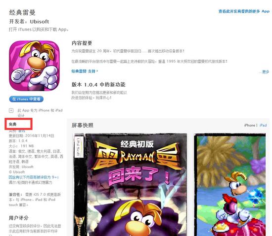法国育碧喜迎30周年:《经典雷曼》移动版免费