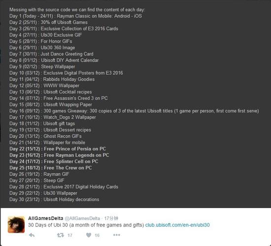今年,法国游戏厂商育碧正式成立30周年,为了纪念这一有意义的时刻,育碧向广大玩家以每月一款的速度赠送了许多游戏,同时只要登陆育碧的活动页面,也可以连续30天获得育碧赠送的礼物。 现在该活动已经开启,首先向诸位玩家免费赠送的游戏是移动平台的《经典雷曼》,现在本作已经在App Store免费,点击即可领取。
