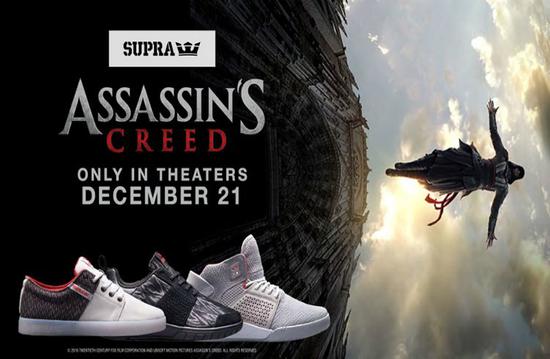 《刺客信条》电影将在本月21号正式上映,为了更好的进行宣传,育碧近日与美国加州鞋企Supra合作,推出了刺客信条主题的运动鞋,喜欢的小伙伴为何不来一发信仰之跃呢?不过当然,穿了这双鞋你也依然爬不了楼房... 这款Supra跑鞋有三档型号,分别为Stacks II(售价75美元)、Scissor(售价100美元)和Skytop III(售价110美元)。如果你对这款刺客信条主题跑鞋感兴趣,不妨去他们的官网看看。 点击进入>>官方销售地址<<