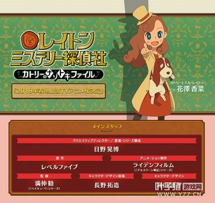 Level-5宣布旗下游戏《雷顿的神秘之旅:卡翠埃尔与大富翁的阴谋(Layton's Mystery Journey: Katrielle and The Millionaire's Conspiracy)》的改编动画《雷顿神秘侦探社(レイトンミステリー探偵社)》将于2018年春季推出,主人公雷顿教授的女儿卡翠埃尔确定将由日本著名声优花泽香菜配音。
