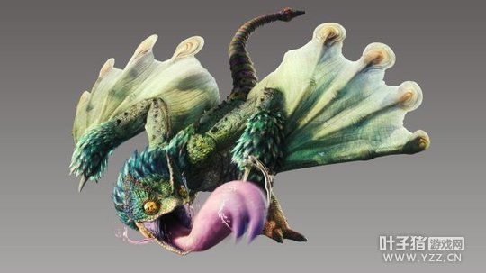 鸟龙种,具备毒属性,能伸出长长的舌头,尾部可以吸收植物产生毒液,并用毒液攻击猎人。