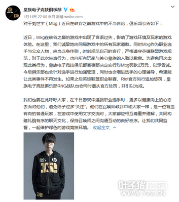 原标题:LOL走A怪、Mlxg再度被罚,主播“碰瓷”职业选手没人管? 正所谓“人红是非多”,自从RNG在S7世界赛上大放异彩后,有关队内选手的各种节奏也从未停止过。昨日下午4点和晚上10点,RNG官博连续发出了两条队内选手的处罚消息。 一条为“走A怪”戴志春在韩服Rank中送头的处罚公告,皇族对其处以扣除三个月工资的惩罚: