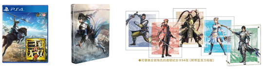 在此前公布的标准版游戏的基础上,“初回限定珍藏版”游戏同步首发,内容包括《真三国无双8》软件一张,铁盒一个,透明纪念卡94张(附带亚克力相框),建议零售价为499元人民币。其中《真三国无双8》主题设计的精美铁盒,极具收藏价值。