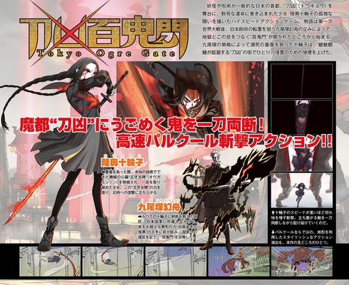 这是一款横版卷轴动作游戏,设定为魔法与幽灵并存的东京,主角为孤胆女猎魔人Jurinko Michinoku。刚刚打过第一次世界大战,连接地狱的“人魔之门”开启,大反派Genshu Kuodzuka意图毁灭日本政府。玩家操控的主角可以连续劈砍魔兽,打出的招术越华丽,攻击力越强。虽然是横版卷轴动作游戏,但游戏的前后卷轴场景同样会因玩家的行为做出反馈,对玩家造成挑战。