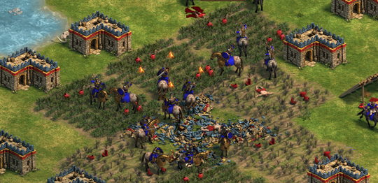 《帝国时代:决定版》维持了游戏原本的玩法。 《帝国时代:决定版》在核心玩法上没有进行任何改动。它不像其他RTS游戏那样专注于一场战斗,而是聚焦于每个文明的不同阶段,从石器时代、工具时代、青铜时代到铁器时代。这一传统延续到了系列每部作品当中,成为《帝国时代》标志性的作品特征。其中游戏文明的每次时代跃迁,都代表了人类在历史上的重大发展。这种游戏与时代结合所产生的奇妙反应仍然保留至今;从篝火营地到城墙堡垒,从茹毛饮血的野蛮人到披甲持枪的整齐部队,“时代”的发展永远是《帝国时代》亘古不变的根基。并且由此,游戏也催生出了最基础的玩法——搜集资源、获取食物、升级建筑、组织军队、最终设法获取胜利。这种看似简单的玩法即使放在今天也并不过时,并且依旧经典。在维持了《帝国时代》基础玩法的同时,“决定版”做出的最大改变莫过于画质与音乐的全面升级。