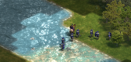 寻路系统无论在过去还是现在都显得相当笨拙。 为了使玩家体验“原汁原味”的游戏内容,微软并没有对“决定版”的玩法或系统做出修改。因此许多原版游戏就存在的“毛病”也随之遗传了下来。其中最明显的莫过于寻路系统,无论是在过去、还是在现在都显得尤为笨拙。像自家的农民相互卡住不动;操纵队伍通过狭窄地形时,前一个单位卡住后面的队伍。这些现象在游玩过程中比比皆是,甚至有时连单位的自动攻击也会出现问题。再加上游戏在操作上颇有年代的卡顿感,使《帝国时代:决定版》整体的操作手感十分生硬。很多时候玩家会被迫执行一些额外的操作,以达成一些本该由系统来完成的动作。这些在1997年就出现的问题仍然遗留至今,在时间的催生下变得更加突出。