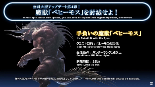 《怪物猎人:世界(Monster Hunter: World)》最近推出了与《最终幻想14(Final Fantasy XIV)》联动的新怪物贝希摩斯(Behemoth)。这只从异世界穿越而来的巨兽十分强大,让猎人们吃了不少苦头。不过不要担心,接下来我们就会向你介绍如何合理运用战术优势和它的弱点来驯服这只巨兽。