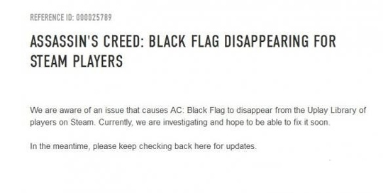 育碧出新Bug?Steam平台《刺客信条4》突然消失