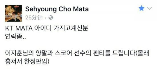 时值《英雄联盟》转会期,各大战队的人员变动也受到了大量玩家的关注,不过有些选手却遇到了一个挺尴尬的问题。此前我们曾经报道过,加入KT战队的ADC选手Deft曾经在个人网页上发文求购“KT Deft”这个召唤师名字,而ID拥有者也与Deft交流过,不过最终因为价格问题并没有购买。不过大多数提前抢注这些ID的玩家都是真爱粉,这种情况还是非常少见的。 尴尬的是,Deft的下路搭档、从巴塞罗那全明星赛归来后的Mata也遇到同样的问题,他发现自己无法改名。于是Mata在个人主页上发文:“请拥有KT Mata这个ID的玩家请联系我,我可以给你LeeJiHoon(KT教练)的袜子和Score(KT打野)的内裤,这都是偷来的原味限定版!” 这引起了广大粉丝们的热议,Mata一向以风趣幽默著称,全明星赛上的亚索表演为他积蓄了不少人气,不知道Mata是否如愿以偿地能够收回属于自己的专属ID呢。 |