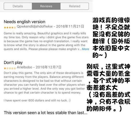 面对火爆国内的现象级网游《阴阳师》,国外玩家在苹果商店都给予了怎样的评价?目前国际服已经有专门的海外服务器,不过游戏还是中文的,一般来说老外玩起来难度值颇大,不过这并不能阻挡老外们游戏的决心! |