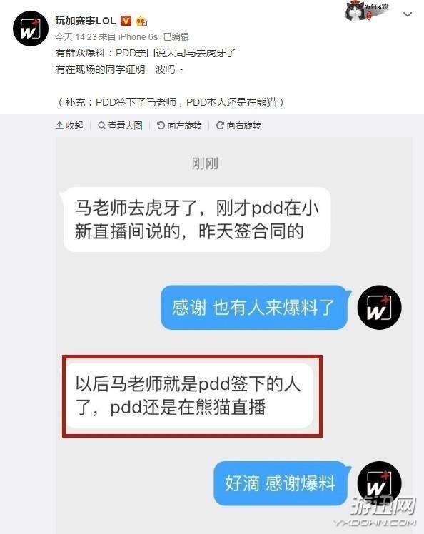 网友爆料PDD已签下马老师 后者将跳槽去虎牙