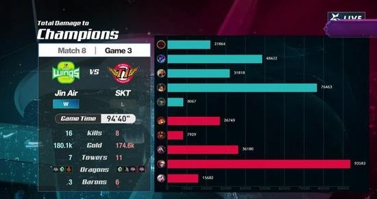 英雄联盟LCK赛区,SKT对战JAG。原以为是烧烤摊秋风扫落叶般2:0击败JAG,没想到JAG真的自带膀胱局buff,第三局已经拖到超过90分钟了。 SKT第一局Faker掏出本命瑞兹,Wolf首发打野选出皇子。瑞兹这个英雄在前几日RNG比赛上小虎已经用成绩证明了:大光头永不落幕。更何况是faker的大光头。 果不其然,最后把团战纳尔拍到数人,带领SKT拿下团战胜利。 第二把发挥出色的UNTARA惨遭JAG军训,脑壳儿都被打爆了。虽然LCK中单李哥伸出大腿,但架不住腿部挂件太多。JAG扳回一城。 终于,比赛来到了第三局。任谁都想不到。。。这场比赛可以打到超过90分钟。新上单Thal替下上一把发挥不佳的Untara,faker卡萨丁各种单带。双方一度谁都奈何不了谁。还是faker最后露出破绽被率先击杀后skt被让1追2,JAG完成史诗翻盘。 赛后李哥已经生无可恋。 另一个李哥也快睡着了。此前的最高纪录是91分21秒,由ahq与HKA于2014年创造。而现在这场比赛有94分35秒!ADC补刀也直逼1500刀。解说们嗓子都喊哑了。。。 然而这场传奇比赛输出并没有很高。。。 最高的EZ也才9W多的伤害。 |