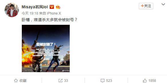 主播吃鸡、主播被封号,《绝地求生》绕不开的两个话题。今天若风也赶上了。 若风在微博上晒出了自己《绝地求生》账户被暂时封停的照片,表示“一局杀15人会被封号。”而图中信息则是表示,此账户暂时被封停,因有太多人举报滥用非法软件及有不正常的游戏记录。被封停期间暂时无法游戏。 而若风的上一条微博,则是在晒自己29杀的战绩…… 此前坊间一直有说法,为了应对外挂,官方更新了反作弊机制,一局杀15人会被封号。去年的时候,PDD在直播期间,也曾因为击杀过多被官方暂时封停账号,不过之后PDD表示账号已经解封。 若风的这种情况似乎和PDD当时的情况相似,若风自己表示会去找“官方小伙伴求证”。不过看起来他是毫不在意,刚刚又晒出了自己小号32杀的截图…… |