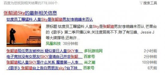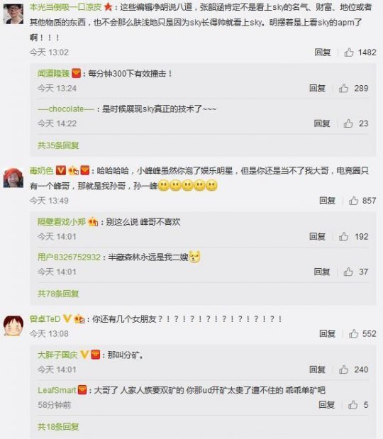 今天,被称为“人皇”的《魔兽争霸》前职业选手Sky突然又火了一把,而这次Sky火的原因却并不是因为电竞圈内的事,而是因为一则花边资讯。 现在打开搜索网站搜索“张韶涵”和“Sky”等关键词,就会出现大量类似的搜索结果: 而这件事的起因,则是歌手张韶涵在参加《歌手》时表示她有一个圈外男友。从她的描述来看,她的这位绯闻男友和人皇Sky的特征非常相似: 1.名叫Sky,本名姓李; 2.并不是娱乐圈中的人; 3.曾是电子竞技职业选手。 综合起这几条特征来看,Sky是张韶涵男友的“嫌疑”非常大,于是乎Sky前辈自然就成了各大媒体怀疑的对象。不过今天中午Sky在个人微博中辟谣,表示媒体疯传的“张韶涵男友”并不是自己。 与此同时,还有网友爆出了Sky的朋友圈澄清截图: 虽然Sky本人已经做出了澄清,但是依然挡不住网友们的好奇心,不少网友跑到Sky的微博评论区就是一顿乱秀,甚至还有不少电竞圈内人士参与其中。 关于这次闹出的乌龙事件,各位小伙伴怎么看? |