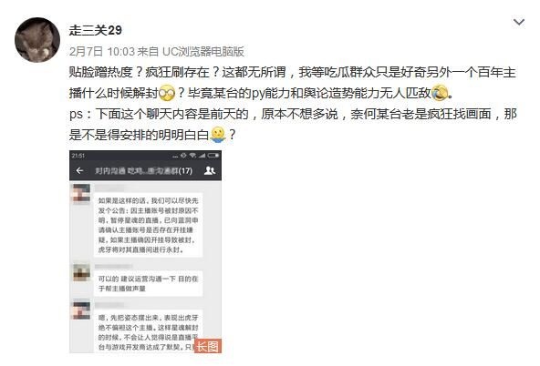 近段时间,《绝地求生》直播圈的日子过得并不太平,自从糯米被锤爆之后无数主播相继被挖出开挂,就连五五开、蛇哥这样的一哥级人物也未能幸免。时至今日,不仅仅是主播遭殃,不少职业选手也相继爆出了开挂丑闻。 就在本周,XZ战队的职业选手星魂和前IG职业选手、现绝地求生主播sy是个萌妹也被蓝洞官方封号,并且两人被封禁的时间均为100年,也就是传说中的“永久封号”。 但奇怪的是,这两位选手的账号都是在被封100年、官方不接受任何申诉请求的情况下突然解封,在账号解封后,sy甚至将自己的直播间改为“百年封号已解,看我秀就好了”的名字。从客观角度来看,这样极其少数的被封100年账号居然能够解封,这样的情况的确像是蓝洞在打自己的脸。 相信不少小伙伴都和小编有着同样的疑问:造成这种现象的原因究竟是什么? 就在昨天中午,曾经出面指证蛇哥的斗鱼超管再度发文,曝出了虎牙工作人员的内部对话。从爆出的截图来看,虎牙的公关能力不得不让人佩服。 在这条微博的下方,网友们对此也抱有两种不同的看法。有部分网友认为,这有可能是斗鱼为了打击敌台自导自演的戏码: 但也有部分网友认为,从被封100年的账号还未解封时就开始胸有成竹的策划下一步的计划,这次事件是一场虎牙精心策划的炒作的可能性也非常大: 虽然这次曝光的截图可信度有多高目前尚且无法证实,但sy、星魂接连被封号100年又相继解封的操作也的确是看得围观群众们一头雾水。但随着事情的发展和两家平台斗争的不断升级,相信事情的真相很快就能水落石出。不知对于这次斗鱼超管的爆料,各位小伙伴怎么看? |
