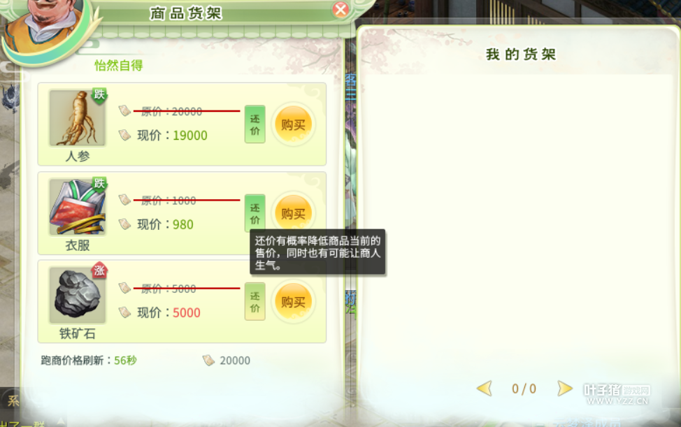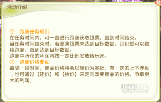 灵山奇缘开测第九天,没钱,想它! 相信大家畅玩游戏这么久肯定会发现金钱不足这个问题。没钱了怎么办?小编今天给大家推荐一条日进万两的致富之道——跑商。只要完成了这个任务,哪怕是任务获得了最低级的评价也会有大量金钱入账,完全足够应付日常开销,大家一起来看看这个跑商任务怎么做的吧! 基础玩法介绍 首先,当玩家等级到达17级之后就可以打开小助手,在日常玩法那一栏找到跑商任务。 ![]() 灵山奇缘小助手 然后自动寻路到任务发布人“陈万豪”处领取任务,即可开始跑商。 跑商,顾名思义就是当一个游戏商人,把货物低价买来,高价卖出,所以我们要找到买卖的地方。只要玩家接取任务后,在地图上就会出现5个任务商人,我们的目的就是跑到那5个商人那买卖东西。只要玩家点开任务栏的“查看商人位置”即可找到这些商人。 任务需要我们在10分钟之内尽量赚取金钱,当然如果我们没有在10分钟之内达成交易量也会有一个保底机制。那就是不再受时间限制,只要完成8万银票的交易量即可完成任务。 值得一提的是货物的价格每1分半钟就会刷新一次,大家一定要看清行情才下手,避免损失。 任务开始后我们首先就近寻路到一个商人处,与他展开交易。第一步是先购买一些物品。大家在购买物品的时候可以去商人进行讨价还价,争取以最低的价格买入。 但是大家要注意的是讨价还价会增加商人的怒气值,当商人暴怒的时候就会拒绝交易,这时我们只能换个商人进行买卖了。 当我们购买好商品之后就可以到下一个商人处卖出,卖出的时候同样可以进行抬价。不过大家要注意的是抬价的时候同样会增长商人的怒气值,大家一定要适可而止。并且一定要注意出售的价格,当出售价格低于原价之后就意味着亏了。 只要大家在规定的时间内完成交易量即可完成任务,并且获得提成。以上就是跑商最基础的玩法。 跑商小技巧 基础玩法已经讲解完毕,这里笔者就给大家讲解跑商玩法的小技巧,要牢记哦。 一、当商品价格被压到最低价或者抬到最高价时,就意味着价格已经达到极限,再还价或者再抬价已经没有用处了。但是此时玩家点击还价或抬价仍会增加商人怒气,所以大家要注意手速。控制一下自己单身多年的力量。 二、购买货物时尽量选择现金比原价低的货物购买,也就是尽量购买正在跌价的货物。这样才更容易进行还价,并且当出售的时候有很大几率为涨价状态,这样就可以卖出更高价钱。 三、我们跑商的时候不仅要遵循就近原则,而且还要注意看商人的怒气值。如果怒气值太高的话我们抬价或还价的余地就会很低,一不小就会让商人暴怒。而商人的怒气值,也会在大地图上显示出来,只要打开大地图即可看到。 本次的灵山奇缘跑商任务攻略就到此结束了,大家还等什么?赶紧跑商赚钱去吧!不过要注意的是一天有两次机会可以跑商,千万不要错过了。更多灵山奇缘精彩攻略,尽在叶子猪灵山奇缘。 |