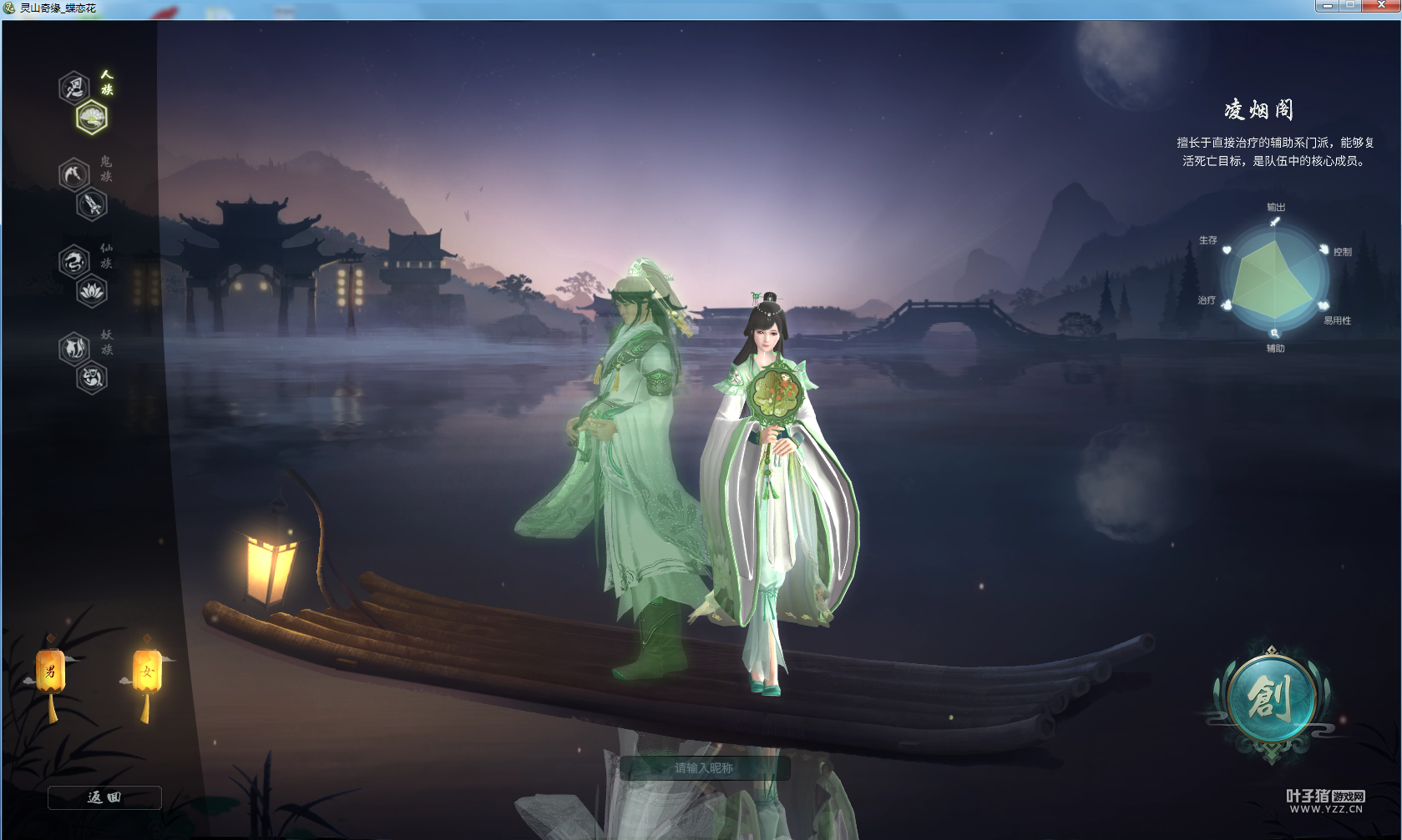 游戏第一步自然是要为自己选择人物角色咯,那么首先要了解下《灵山奇缘》有哪些门派了。 事先朋友也有给我发了一些关于《灵山奇缘》主角原画,非常美,不过眼见为实,看看游戏里的角色造型吧。 从造型上不难看出天策府惯用的武器是枪,很帅气的将士,走的是强力物理攻击路线,群攻的那种,不过攻击范围涉及会小。 人族:凌烟阁 凌烟阁惯用的武器是扇子,制造一种文雅平和的气息,擅长的是治疗辅助,相当于奶妈了。不管什么队伍都是需要一个奶妈进行支撑的,可能在我一惯的逻辑里,人族一般是属于控制系的。 鬼族:地府 鬼族应该是开设两个职业了,目前只开放了地府,角色设计比较英气,惯用武器是剑,蓝色的肤色让我不由想起了阿凡达,地府属于物理攻击,尤其是单体暴击伤害很高。 仙族:龙宫 仙族目前开设了龙宫,另外一个还没开放,我猜测会不会是天宫?或者叫蓬莱?普陀?龙宫角色设计比较仙,被一条小龙环绕,如果人物设计成漂浮状态是不是更仙气飘飘?仙族不用说了,法术秒杀。我是特别喜欢这种输出单位的,无脑秒就好了,操作简单便捷。 妖族:云梦泽 云梦泽男角色造型