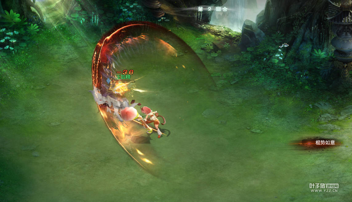 这是进入《灵山奇缘》第一场战斗,上去物理三连击,招式很酷炫,然后就收服了玉狐精,这是作为新手上路的第一只灵宠哦,有三条尾巴。 收服的玉狐精