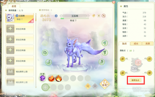 灵宠升级需要为它加点了,系统有个“推荐加点”,较懒的小伙伴可以直接选择“推荐加点进行确认。喜欢打造不一样属性的小伙伴则可以根据灵宠自身的特征进行加点。 宠物加点有四项选择,界面把鼠标一上去就有说明: 灵,法功,法防,用于法宠 力,物攻,物防,用于力宠 体,气血,防御,通用 敏,加速,通用 像玉狐精,它的攻击是法术,那么这就是只法宠咯,系统推荐是加灵和体,法宠肯定是需要加灵的,像升级什么的让宠物快点出手不妨加点敏哦。我选择了加灵和敏。 |