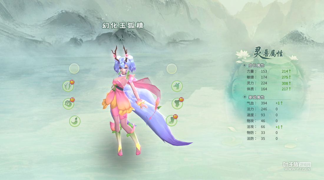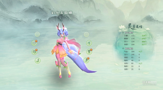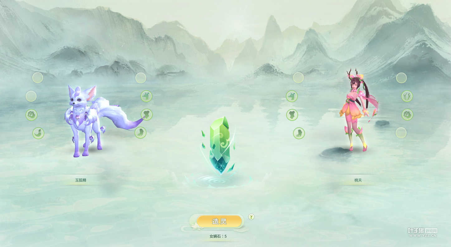 主灵兽就是玉狐精,副灵兽是桃夭,然后点击”造灵“! 造灵后的形象