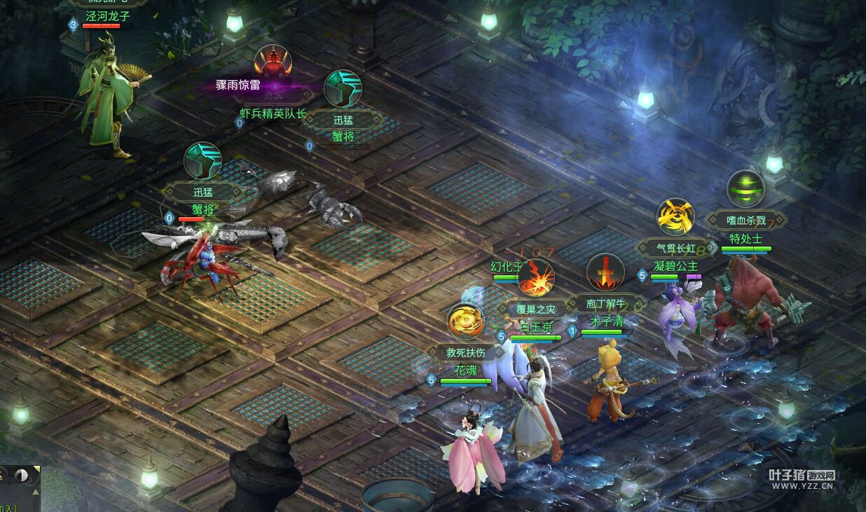 鹰愁涧副本在五行山,做完可获得30级强力装备 第一个怪就是杀龙龟将军,感觉没什么难度,给了我一件装备还不如身上穿的,果断分解了。第二个怪是虾兵精英队长,这个副本出现的都是水族的NPC呀 小秀下我大闹天宫的招式,几个猴子的分身,很酷炫有木有。接下来是被蟹将军拦截,毫无难度性。泾河太子倒是很懂得如何闪亮登场,先是巨龙化身落地以示他太子的尊贵身份,看到他名字我就不由想到那个断头的泾河龙王,请容许我先干笑两声。 解开泾河太子设置的封印后开始对战,这场战役主要是防止血光之灾,中了招下一回合就一定要杀死对面一个水族,不过太子带的都是虾兵蟹将弱爆了,这次倒是给了我一件比身上要好点的衣服,赶紧换上把不用了的分解掉。 默默地端详着夜叉,总觉得这才是货真价实的小白龙造型,只要稍微优化下,哈哈。我不由想起那个西海三公主小白龙了。灵山奇缘把小白龙设置为女性,肯定是有涵义的,这个需要我后期挖掘了。 鹰愁涧副本的大BOSS泾河龙王出来了,待我一阵乱棍打完泾河龙王跑了,小白龙闪亮登场,这个时候玄奘出现,貌似没我什么戏份了。 这个剧情竟然把我设置背对着他们,天理何在呀,前面好歹是我一个人各种暴殴好不好,一通关就剩玄奘的戏份,果然是主角光环,我深深领悟到我原来是个跑龙套。