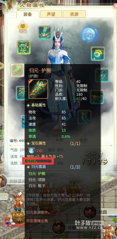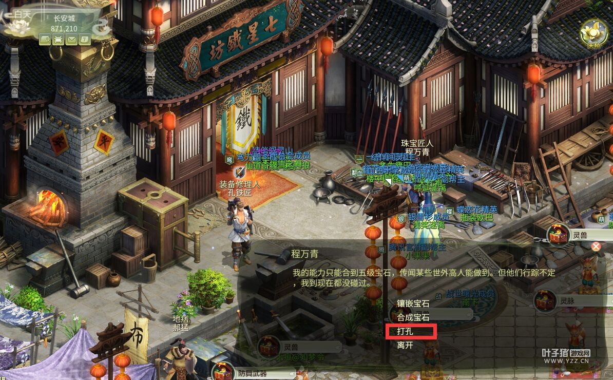《灵山奇缘》人物穿装备是有战斗评分值的,当然也不是评分越高装备就越好,也要看对应的属性是否合适你这个职业。 在游戏里人物角色的装备一共有9件哦,装备是有几率拥有一个孔用来镶嵌宝石,这个孔分不同颜色镶嵌相应颜色的宝石,不同颜色宝石加成属性不同。 像宝石是分级别的,两个相同级别相同颜色的宝石可以合成升级,宝石对装备的影响极大,所以一定要好好运用宝石发挥其价值。 今天给大家分享下装备如何打孔和宝石合成存放小物品等小技巧,先看以下示例: 找到长安城871.210珠宝匠人程万清,他有3个功能:镶嵌宝石,合成宝石,打孔。 镶嵌宝石,顾名思义就是为自己有孔的装备打上相应的宝石为装备增加数值。 合成宝石,同等级一个类型的宝石两个可以合成一个更高1级的宝石,如两个1级宝石可合成2级宝石,目前我的宝石是合到3级,成功率为百分百 打孔,打的孔可以多镶嵌一块宝石,示例如下:
