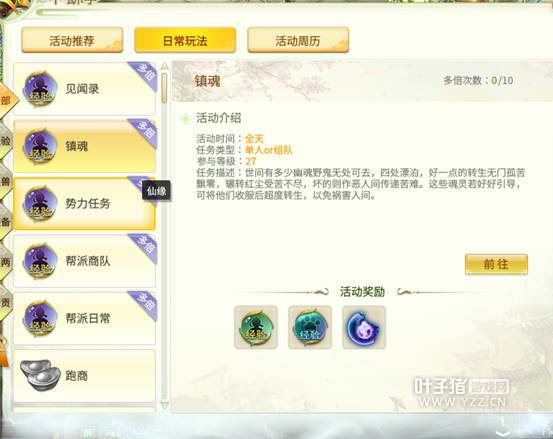 灵山奇缘新版本寒骨冰心即将到来,新角色白骨洞也会震撼亮相,到时一定会有一大批萌新加入灵山世界,一道去探索灵山奇缘,那么灵山奇缘基本的日常玩法有哪些呢?在此给大家做了一些简单的梳理,以便大家能够对灵山奇缘有一个初步的了解。 一、 镇魂任务 每天可以做60次(10+50)10次多倍奖励,队长有额外经验奖励。PS:1.在镇魂过程中有些“我是鬼魂”在其被击杀后会幻化成一个小蓝光点,可以点击收服。增加物品栏中引魂铃中的引魂值,可以使用进行超度亡魂,可获得奖励;2.镇魂过程会遇到灵兽宝宝可以捕捉。 推荐阵容:1辅助+4龙宫,推荐魂印,气贯长虹,这样保证进场龙宫放大招。大大提高了镇魂效率。 二、见闻录 每天可以做5次。这个任务就是一些类似剧情任务,很简单没有难度,可获得大量经验。注意在做见闻录时注意任务提示,根据提示去做可以提高效率。 三、势力任务 每天可以做25次(5+20)5次多倍奖励。 势力任务可根据伙伴情况去选择寻仙阁、烈武盟、多宝会做其中一家,任务类型分两种,一种是选择增加仙缘,也就是给自己伙伴升级用的。(一般推荐做这个)另一种就是获得玉诀,类似于一种势力货币,可以在对应的势力商人处换取东西。 Ps低倍势力任务可以派遣伙伴去完成。 四、帮派任务 1、帮派日常 每天可以完成25次(5+20)5次高效奖励,一般就是找找人,跑跑腿,扫扫地。没有难道可以获得经验+帮贡。 2、帮派跑商 每天可以完成5次。就是置办东西送到指定位置。注意在打开界面后选择装货,没有的物品直接去买,不要关闭界面,到时会装齐备了可以直接出发。否则还要回到帮派重新装货。 3、帮派建设 每天5次,跑跑腿的任务,没有难度。注意,帮主什么时候开建设及时和帮派成员沟通好,以保证顺利完成帮派建设。 4、帮战筹备 根据任务需要,放置合适的伙伴,靠时间完成的任务,到时间收取奖励即可。 五、寻宝 藏宝图任务,每天可以打10张。根据任务提示,选择正确的妖怪战斗即可。 六、跑商 跑商一天可以完成2次,在规定的时间内赚取利润,即为银两奖励。使用通商凭证可以增加跑商次数。 关于跑商,就是低价买入高价卖出。绿色字体的是正在降价的商品,红色的则是涨价的商品。 一定要注意的是关于“还价”和“抬价”。我们购买商品的时候可以进行“还价”来降低我们的购买价格,出售商品时可以进行“抬价”来提高我们出售的价格,达到更大的利润。 “抬价”和“还价”是有成功和失败几率的,但是不论成功或者失败,都会增加商人的负面情绪,如果“抬价”“还价”的次数过多,让商人恼羞成怒的话,商人就不会收购你的商品,也不会出售商品给你了。注意不要让商人恼羞成怒,买卖界面左上方商人的头像下面有商人当前的心情状态。 五、幻境试练 单人任务,需要一层层的去闯,爬得层数越多,奖励越多,只要不放弃自动离开,允许失败。大体攻略就是封住一个,集火另外一个,随着层数越高有一定的难度,需要去摸索。 六、守护之战 每天正点刷新,每日限次3次。需要队伍配合,最主要的是需要队长眼疾手快+刷脸运气去抢到。护送完守护可以获得不错的奖励。当然了还可去劫杀别人杀的守护,自己送达到位,也能获得奖励。 七、钓鱼活动 每天可以完成20次,在 长安杂货店购买鱼竿后,在钓鱼地点(烟阁鱼池、长安花船水池、长安东郊水池、五行山水池、云梦泽瀑布水池、花果山上方水池、乌斯藏月宫入口处水池) 水面找有圆圈的涟漪就是钓鱼点,每个钓鱼点刷的鱼群随机,鼠标指针指到那里会变成鱼钩并显示是什么鱼群,点击就可以钓鱼。提示“好像有鱼上钩了”时,点击鱼钩处,就可以钓上鱼了。 PS钓到特殊情况1、河伯:问你丢失的是什么鱼竿,你钓鱼时用的什么鱼竿就回答什么鱼竿,诚实回答会奖励普通、白银、黄金鱼竿。 2、河妖:击败河妖会获得一级随机宝石,该河妖可以组队击杀,队伍人员都可以获得宝石,好像不是百分百获得。 3、丫鬟:可以花500两银子购买香囊,使用香囊后钓鱼可以获得相应的香鱼 4、醉汉:可以花500两银子购买美酒,使用美酒后钓鱼可以获得相应的醉鱼 5、任务道具:如“洪九公的拐杖”等,使用后可以接到相应任务,奖励少量经验和银两。 钓到的鱼可以到鱼市老板、余杭去找酒楼老板处换取积分和银两。 (招财猫)可以拿鱼去各地图喂猫,最让它开心的十个可能会获得奖励,应该是喂养最多的,看运气。当猫儿喂饱了以后(需要全区人民共同努力)就会全图撒宝箱,任何人都可以拣,每天最多拾取10个箱子。 八、无量劫 每周可以完成7次,即随机一个副本活动。有渡劫符可以挑战更高难度,完成可以获得装备。需要队伍配合,有一定难度。 九、勇闯玲珑塔 组队活动,每周可以完成一次。需要队伍配合,根据任务等级有层数限制。 十、寻仙答题 需要有唤仙符,每日限次7次。答题即可获得奖励。 十一、副本活动 首次通关有大量奖励,次数不限。可以打些装备(一些低等级装备势力等任务会需要),卖些银两。 PS关于隐陵副本最后BOSS介绍一下: 队伍里一速选将,二速选炮,剩下三个个2车1马即可。人和灵兽全部集火主。第一回合将用狂暴,炮用破隐炮 车马单秒。第二回合 将秒或者加血都行 其他继续秒主BOSS,主死了就过了。 一些日常玩法,简单为大家介绍到这里,一些特色活动及玩法,另做攻略安排,希望能对大家有所帮助。 附录:钓