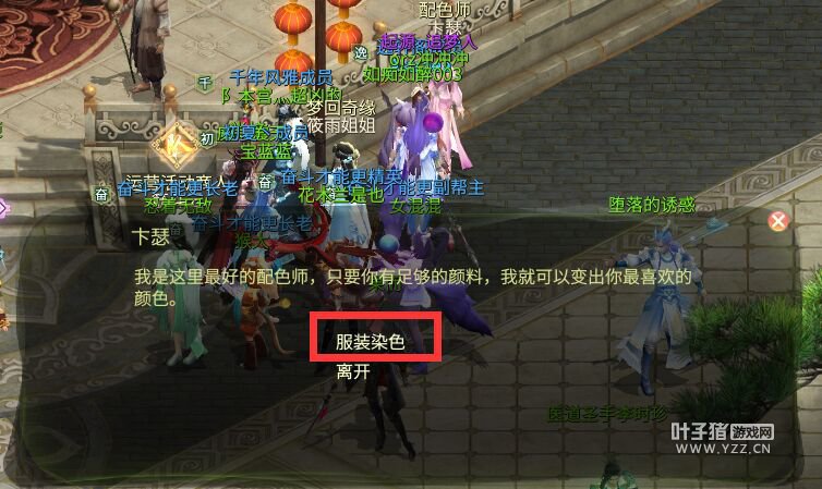 《灵山奇缘》在10月13日游戏维护更新后,推出了新功能——染色系统,玩家终于可以在角色的不同部位拥有自定义颜色的权限,根据喜好打造不一样的造型,是不是想想也有点小激动呢! 上号之后,长安779.419也就是寻仙阁门口右边已聚集不少玩家,这儿新增了两个NPC:梦回奇缘的筱雨姐姐和配色师- 卞瑟,染色系统自然是要找卞瑟了 卞瑟的卞字可能有些小伙伴不认识,拼音读bian,卞瑟谐音就是“变色”,哈哈,染色就是变色对不对?