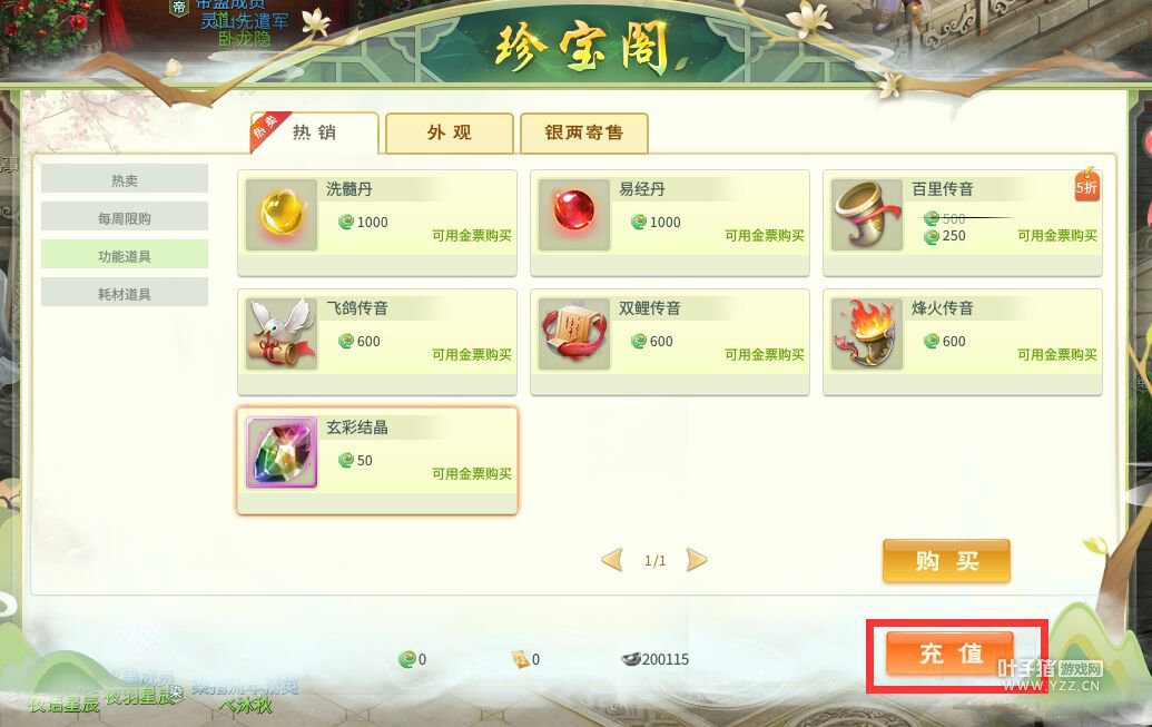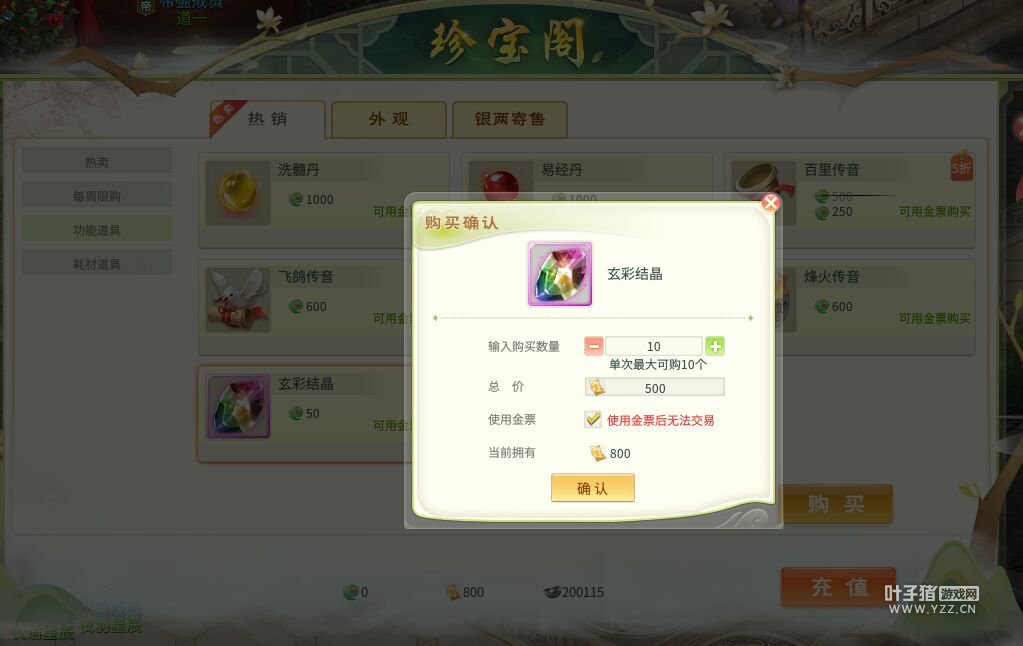 对话选项只有两个:“服装染色”和“离开”,点击“服装染色”就弹出了“染色界面”,会发现人物可以染色的有四个部位:头饰、衣服、护腕、下摆,每一个部位都有10个不同颜色可以进行搭配,搭配方案1属于原色的人物色调 染色需要耗费的是银票和玄彩结晶,数量分别如下: 头饰:银票20000,玄彩结晶6 衣服:银票50000,玄彩结晶8 护腕:银票15000,玄彩结晶2 下摆:银票15000,玄彩结晶2 如果从头到脚都要染的话,共计银票100000,玄彩结晶18 可能就有好奇宝宝提问了,这个玄彩结晶如何获得?图片上并没有标注获得方式。玄彩结晶在珍宝阁就有卖的! 打开商城,在“珍宝阁”界面的“功能道具”里就有“玄彩结晶”出售,价钱为50金玉/个,也可以用金票购买 我身上正好有800金票,在购买时点击“使用金票”购买,一次最多选择10个,800金票可以买16个,要分两次购买。 如果没有金票的朋友想购买玄彩结晶,可以直接选择充值 最后看看我的染色成果吧: 以上就是关于灵山奇缘外观染色体验,不同部位有十个颜色选项,可以根据你的喜好打造不一样的造型,你,就是灵山奇缘的主角!还有染色的朋友赶快来游戏试试吧!更多关于游戏的精彩资讯请关注叶子猪灵山奇缘专区:http://news.yzz.cn/gamelsqy/ |