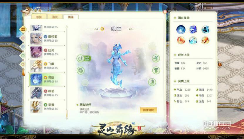 【灵幽】则更像缥缈的游魂,她们通体幽蓝,长发飘飘,身如浮萍无所依。手持魂灯的她们原型则更接近于人类体型,令人见之犹怜,在游戏中属于敏血类灵兽。