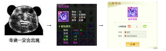 灵山有法宝,就找狐狸萧。各位仙友们好,我是你们的老朋友萧狐狸,上一期我们结束了漫长的各门派角色和宠物的勇武段打造介绍,也迎来了崭新的2019年,萧狐狸在此祝各位仙友开年大吉,打造出神器~而今天为大家带来的就是二组大佬且听风吟丶然充满坎坷与机遇的魂器之路,非酋还是欧皇?各位仙友看完之后心中自有定数。 灵山奇缘叶子猪2月独家限量礼包:http://news.yzz.cn/gamelsqy/ydlb2019/ 数量有限,快快行动! 这便是且听风吟丶然追梦途中的背包截图,不少仙友可能就会问了,为什么前后加一起只有22个魂器?这也能算打造之路?实际山这些仅仅是本次打造之路的冰山一角。据大佬本人所说,此次追梦共计打造150手以上,各种瓜皮属性都有,而这也是为什么我们见不到它们的原因······就像下面这样~ 除此之外,还有这样或者那样的奇(la)特(ji)魂器在路上等待: 加体的,加力的,就是没有加敏的;特效的,特技的,就是没有能用的。萧狐狸我已经被这近乎实体化的非气震撼到了······ 然而大佬就是大佬,即使是非酋也要变成爱你的形状······ 终于,随着咣当两响,本期栏目的两位主角闪亮登场~ 萧狐狸瞬间选择困难症爆发,80的魂器能装11级宝石但是不能铭刻,70的魂器可以铭刻但是只能装9级宝石,这谁顶得住啊!!! 此时且听风吟丶然大佬在看了铭刻面板后长叹一声:32敏,真的知足了! 可能有些仙友会感到不解,仅仅32点敏捷而已,至于么?萧狐狸遍查万物生灵神兵榜,目前未铭刻基础面板敏捷最高的魂器也仅仅只有22点,由梦月云烟打造,目前持有者为折月煮酒丶寥梦。 可以说至少对于二组而言,且听风吟丶然大佬的这两件装备已经很极限了(当然不排除有未出世的神器由于战力系统统计方式的缘故并未上榜的情况),不过目前来看已经不失为云梦泽门派武器中的上好佳品,一切的努力都是值得的! 灵山有法宝,就找狐狸萧。坎坷魂器路走完,幸得光明终点,各位仙友想必心中也对这位大佬的魂器之路是非是欧有一个定数了,不过这也仅仅是个开始,2019年必将有更多的惊喜与趣闻在我们身边,再次祝各位仙友新年大吉,常出神器!我是萧狐狸,我们下期再见! 叶子猪灵山奇缘春节独家礼包:http://news.yzz.cn/gamelsqy/ydlb2019/ 如有什么疑问可以加入叶子猪灵山奇缘福利群【点击加群】和众多玩家一起讨论哦!! |
