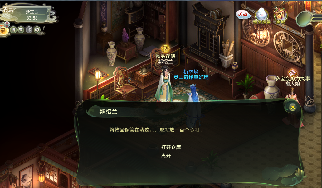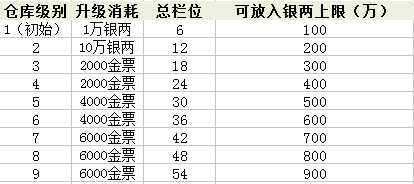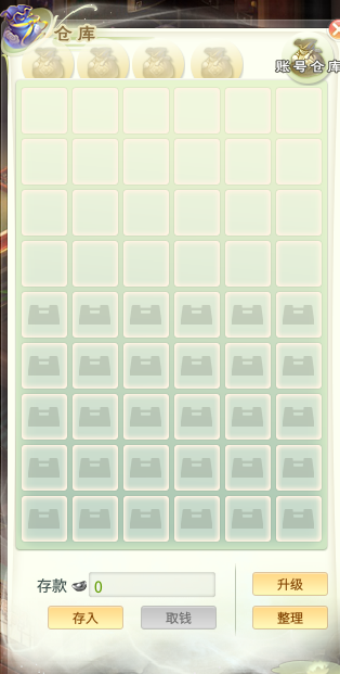 不少新人玩家不知道《灵山奇缘》里也是有供玩家存放道具和银两的仓库的。接下来小编为大家介绍一下灵山奇缘的仓库在哪里,怎么才能开仓库。 仓库介绍: 账号仓库是同账号同服务器下所有角色都可以共用的仓库。玩家可以在仓库管理员处购买和使用账号仓库,用存放可交易物品和银两。 仓库管理员位置在长安多宝会2楼,名字叫郭绍兰。 开仓库方法: 玩家达到等级60级后,可以消耗1万银两购买账号仓库。 账号仓库初始购买可获得6个物品栏,可最多存储100万银两。 账号仓库还可以消耗银两或金票进行升级,获得更多的物品栏和更高的银两存储上限。 账号仓库的升级消耗与收益如下: |