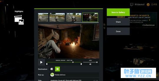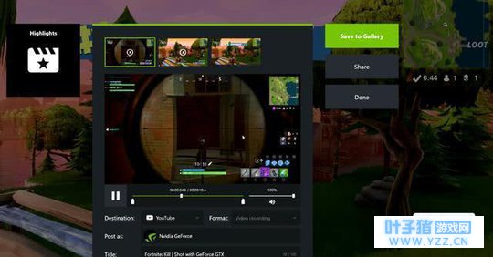 GeForceExperience软件不仅可以录像、截图,还可以将录像保存为gif图片,分享的社交平台也完全本地化了,支持国内的微博等平台。
