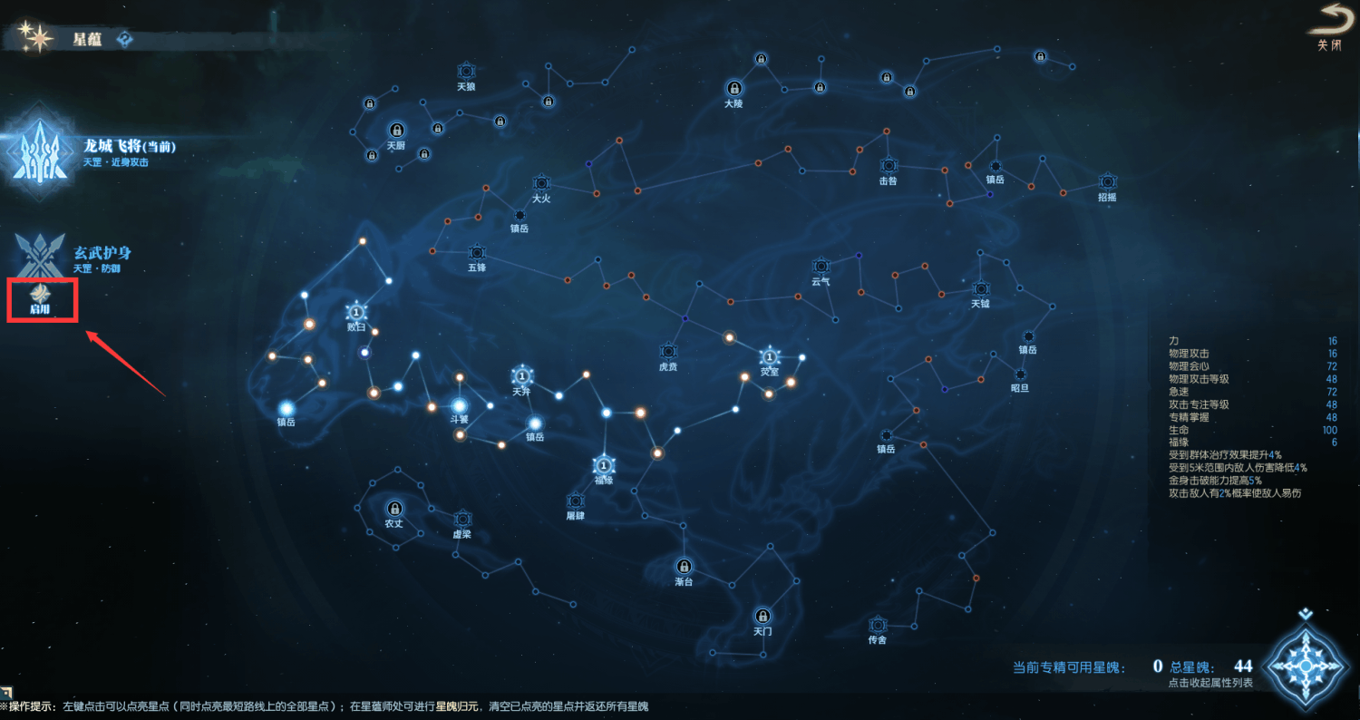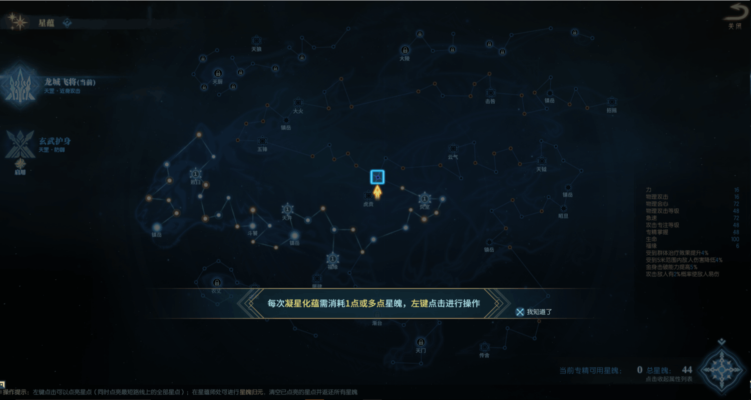 凝星化蕴:点亮星蕴点获得属性提升,每次消耗星魄