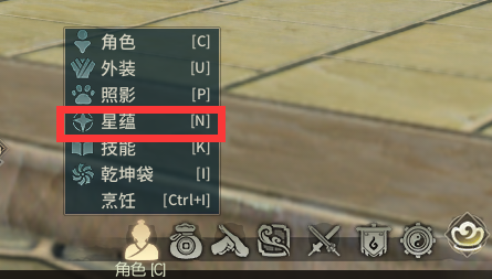 游戏主界面,鼠标移到【角色】图标上,在弹出选项框中点击【星蕴】即可打开界面