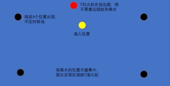 作者:景帝寒洲 叶子猪古剑奇谭OL专区整理发布 九玉府文字是古剑奇谭OL的难度较高的副本之一,今天笔者为大家带来玄九玉府文字攻略及BOSS技能机制详解。老规矩通关截图镇楼——出了斩风D、咒隐D武器和T项链。 推荐队伍配置: 主T(天罡斩风均可)、双修副T(与主T不同职业) 咒奶1、司命奶1,双修司命或妙法1;(奶妈职业不绝对,有1个咒奶最好) 远程DPS(神虹、妙法、司命),近战DPS(飞星、斩风、咒隐、天罡均可) 说明: 1、带一个骚的天罡D,老五和老六有概率轻松很多 2、如果是纯开荒队,那带一个手法OK的爆灯咒隐会好打一点,不过不是必带; 3、尽量能均衡职业,做到不抢装备,避免出了装备没有需求的。 想通关的队伍:全队6个DPS的情况下,平均实战秒伤310+(可吃药吃菜);硬性指标; 如果更灵性的队伍,1T2N7D能打的,那DPS可以降低(不过更加困难,,不如换DPS) 主T建议属性:裸状态5600+血、100双防以上;低于此数值较难打。 奶妈HPS:3奶且机制熟悉后,平均280左右比较好过; 达不到这个要求的队伍,建议打1,2,3然后提升一波装备之后打4,5,6. 副本所有BOSS都有狂暴机制;老一老二6分钟;老三-老六8分钟。 老一: 难度:中等 推荐配置: 1T2N7D P1只有侍道,随便撸就过了。(开荒队伍可以借此熟悉侍道技能) 侍道技能: 1、点名一个DPS蓄力矩形长条AOE,很容易躲 2、减速符——全场所有人必中;无伤害,但是所有蓄力和读条技能释放时间延长很多。 基本上这个技能中了之后妙法就不要放读条技能了,神虹也不要蓄力云龙了; 3、护体剑阵——侍道移速降低,身体周围出一圈剑阵,碰到就死。(灭团点) 4、爆裂符——侍道随机点名一个非T单位,身上会有一个延迟爆炸的符咒,需要远离人群之后自己开减伤。如果炸到人堆里很容易GG 侍道的减速符和剑阵都有语音提示,中爆裂符的人 队伍中能看到,指挥记得提醒。 P2::侍道受到爱的鼓励满血复活;玉藻本体参战;玉藻和侍道共享血量 玉藻站在场地中心不会移动,技能: 你们打过终南山的小猫猫没?跟小猫猫的技能一样 扇形AOE、点名出火圈、点名喷3个火球; 特殊技能: 玉藻每隔一定时间会放反伤盾,这时候就要转火侍道了。没有盾了之后再打玉藻 推荐打法: T拉着侍道在外围,所有DPS站在玉藻附近;被点名火圈和爆裂符的人远离人群 这样所有人基本都不会被侍道的剑阵刮到;T及时提示侍道开剑阵的信息; 被点名的人去处理火圈和符的时候注意不要撞到侍道身上去了。 老一基本是送的,纯开荒队伍基本上灭个1-2次也能比较轻松过。 附一张示意图。蓝色区域为T溜侍道的区域,橙色为其他DPS、奶的位置。除了火圈和爆裂符之外,都不要离开橙色区域 老二: 不灭道人和他的小弟;难度:难 推荐配置: 1T3N6D (2T3N5D也行,不过可能容易触及狂暴线) 老二是玄九第一个守门员,不足够灵性的开荒队伍可以无限团灭到散团。熟悉技能机制和打法之后也需要灭2-3波才能过。非常考验T、奶和全队的走位 不灭道人: 远程BOSS,无仇恨,位置基本不会变动 技能1:普攻——普攻会在打到的人附近弹(跟DOTA里面巫妖的大一样),伤害不高但是如果近战比较多的话,近战容易损血; 技能2:给自己或者暗奴上防御盾(谁血少给谁) 技能3:点名一个人(基本都是点名远程,包括奶)吃一个大蓝球(不能躲避),被点名的人会受到暗奴的关注,暗奴会持续对此人进行普攻(暗奴也是个远程),每次3个小球,每个小球打中之后会在脚底下留下一滩黑水。除非道人的下一个蓝球点名了别人,否则暗奴会持续对你普攻(也就是你需要排黑水)。基本上中了蓝球点名的人,就不要输出或者奶了,专心排好黑水。黑水持续时间很长,但不是永久存在 技能4:点名T吃一个大红球,根据T身上火奴Buff层数造成巨大伤害(减伤低几乎必死) T需要及时开减伤规避(灭团点) 暗奴技能: 1、暗奴会接受道人的指令,对被蓝球点名的人持续放黑水; 2、暗奴会释放范围较大的爆裂球(很多小黑球像喷泉一样出来),站在暗奴身边或者离暗奴很远的话不会吃到;被爆裂球打到的人,会在脚底出黑水;(灭团点) 3、在开场BOSS还没有释放大蓝球之前,暗奴会普攻,普攻会在命中的人脚底出黑水 BOSS点名大蓝球之后,暗奴就只会1,2技能轮着放了 4、暗奴会不定时在场地中的4个位置轮转(排黑水的人和T要及时转场) 5、道人死后暗奴会变成木桩,不会进行任何动作 火奴机制: 1、火奴只会追T,而且仇恨不是很稳定,如果DPS离得比较近可能容易OT; 2、火奴的普攻会给T上Buff,层数越高,火奴和道人的红球打T越疼 3、火奴如果站到黑水上,会释放全场AOE,伤害很高(灭团点) 4、T的层数可以通过站在黑水上消减(但是不要把火奴引到黑水上) 打法: T拉好火奴在外围转,尽量远离其他输出和黑水区域;层数高了就去踩黑水消然后赶紧回去; 点名排黑水的人尽量把黑水集中,以方便T走位 所有近战打暗奴时紧贴暗奴,打道人时注意暗奴的爆裂球; 1个奶专门奶近战(道人的普攻弹射),1个奶专门奶T,1个奶专门奶排黑水的人。如果奶妈被点名排黑水,就奶好自己。 需要有指挥随时报暗奴的爆裂球、道人的蓝球点名和红球点名 (道人放红球没有语音提示,只有文字,但是T因为拉火奴,并不能随时看见道人的技能,一定需要有人提醒T挡红球) 熟悉机制后走位灵性,一般灭个2-3把就过了。 老三 惊蛰教银蝎使者 难度:易 推荐配置: 1T2N7D 老三是第一个DPS检测机器,72W的血,8分钟狂暴。6D有可能输出不够 老三技能: 1、