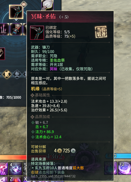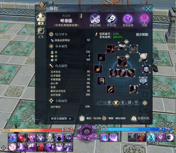 首先第一个,生白骨,最直接的收益,3%生命值,用一次白赚3%生命值,而我昨天打狐大憨,全程使用了88次引血咒,直接收益就是264%自身生命值。至于为什么不选月笼沙,主要因为开荒团队血线长期不稳,能够安逸读完海雾藏的次数不多,大多时候都是读出1-2跳就要给个引血咒救人,可能farm期的收益比较大。 第二个,祝月咒期间引血耗蓝,还是同样的问题,情况危急到我要开祝月了,往往是团队疯狂血崩,比如老四的素质3连,全团上天+肉饼+点名上天,或者是老五出小怪+点名红蓝斧子,这时候都是6引血咒卡着cd+离心+镇魂才能保住团,更没有时间读海雾藏。 第三个,腾蛇乘雾,不多说,唯一的奶团手段,不需要海雾藏读完,每一跳单独计算。有个要点就是一定要在boss放aoe之前丢下,不然会占用一个gcd。 第四个,祈同生,降低50%离心反噬。祭流年这个目前由于团本大部分boss是全程团血不稳,一个100多秒cd的爆发完全不够用,所以我不会选择。而爱莫离6秒不能奶T,前面boss还好,老五老六T分分钟暴毙给你看。 第五个,月迁星移,优秀的团队减伤,危机时刻还能防止血线低的dps被秒,玩过wow的都知道奶萨一手灵魂连接,无论怎么砍总有进本的门票,奶萨靠着灵魂连接就是开荒标配。3分钟cd,每个boss基本能放出两次,加上斩风的大梦35%团队减伤,能安全度过一些致命的aoe。 接下来是残卷选择,首先必备的,素月,步步生莲优先级最高。素月增加10%最大生命值,直接提升引血咒,祝月咒收益,给T承伤的同时不容易猝死。步步生莲,40秒白送一朵莲花,现在加强了莲花20%减伤,吃技能的时侯脚下放莲花美滋滋,不死的奶才是好奶。 其余多的精修点,可以带长明灯,莲灯照夜,重莲,生无穷等等。千山雾现阶段收益太低,我蛊雾43点治疗,触发千山雾还是43,宛如一个ZZ。残月是祭流年流派,冲突。 属性收益和装备选择 首先奶不是dps,所以没有具体的没点属性提升多少总dps的数据,我也没有nga数学家大佬的水平,只能说说自己的体感。我个人感觉目前咒奶需要的属性是 体=念>急速>法攻>专精>法力,因为带了素月,暴击收益为0。由此得出结论,装备无脑选装等高的穿,左边三个宝石控全部打高等级生命宝石,信物能打念的就念,不然就治疗效果。头和鞋子附魔生命,衣服裤子附魔念,护腕法强,武器治疗效果。以下是我的属性 团本奶的一些需要注意的点和手法 奶和T不是dps,躲好技能打断好,完成好安排的任务,然后打好循环就行。奶和T对于自身资源,团队状态,时间轴等有太多的把控,T的大家可以看看精品区斩风大师姐的贴。奶的话主要是对于蓝量,技能cd,时间轴,buff等的把控,这里咒隐奶还有一个对于自身血量的把控,特别是祝月大砍之后,一些新手咒奶可能会暴毙在祝月上。 咒奶目前定位在于救急,稳T血和团队减伤,请不要想着花式团抬,这也是我走引血流而不走海雾藏的原因,我团长要你咒奶是救急、奶T和减伤的,我要团抬我为何不组一个妙法,何况妙法奶T也不弱,除了救急和团队减伤差了点。所以咒奶请找准自己的定位,救急能力无人能敌,团队血崩情况下,6个引血一个离心能把最少5个人的血线迅速抬到70%以上,我认为70%以上就是安全血线,另外一个奶就会很舒服,不用交大招,可以留着大招更危机的时候,祝月和离心cd分别只有50秒和40秒,能应付各种1分钟左右的aoe。 现阶段dps都在3500-3700左右血量时,我吃丹和食物能有将近4800血,开祝月奶非移伤咒目标一口900,一口就能让一个濒死dps活过来,15秒内4个引血交完,插上蛇,再来慢慢读海雾藏抬血。特别危险的情况就交镇魂,然后给镇魂里铺上莲花,给吃不到镇魂的dps引血。