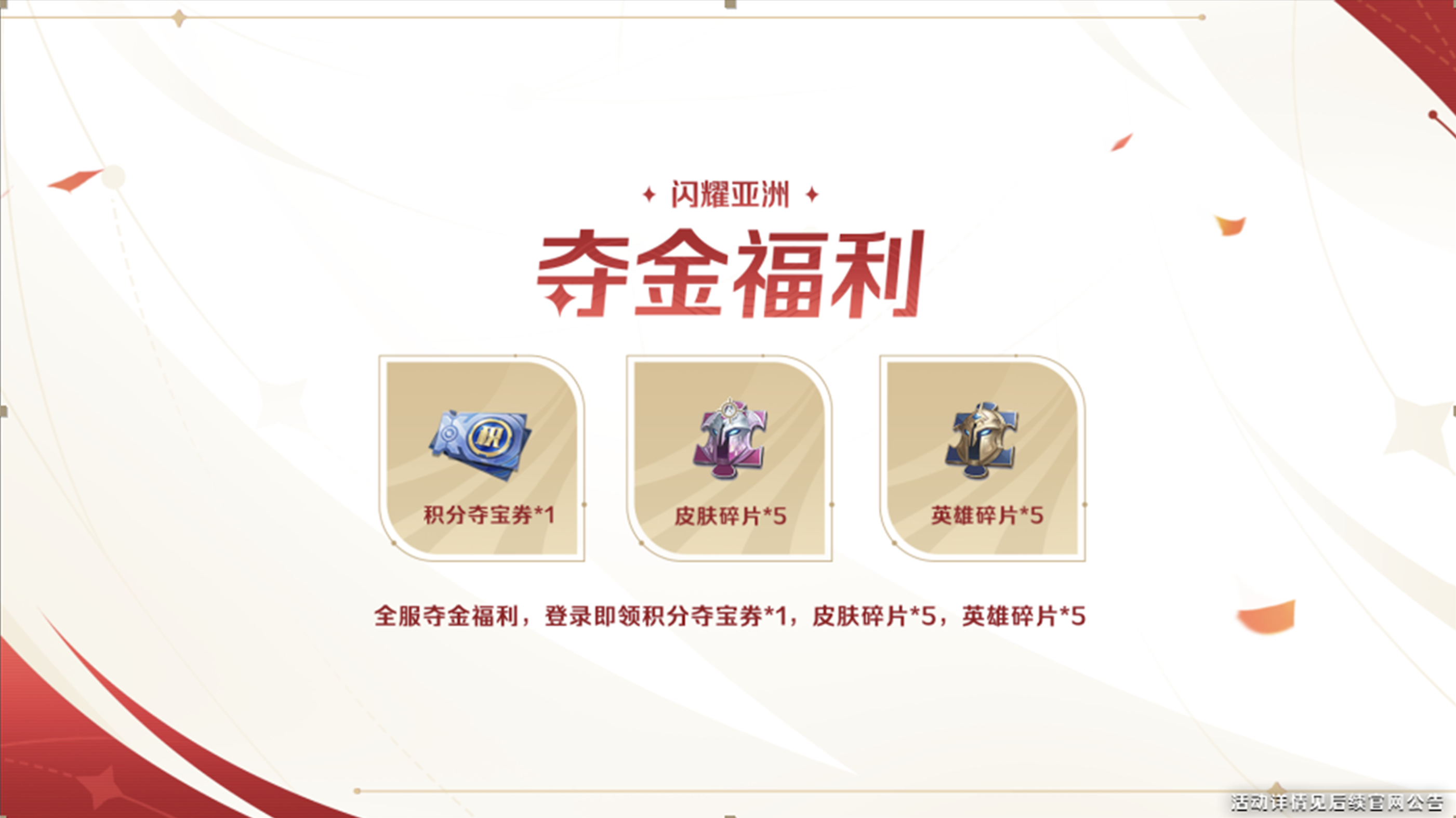 同时近期还有全英雄限免、全直售皮肤限免、五排不限段、钟无艳·巨星闪耀皮肤免费送等更多夺金福利即将上线,敬请期待!