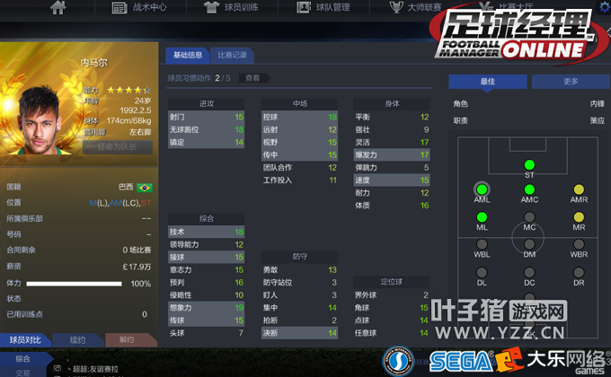 作为世界第一体育运动,各式各样的关于足球的资讯都有可能登上报纸的头条。当然了这里说的可不仅仅是赛场上的事情,包括赛场外的一些球员行为也有可能就成为了今天的头条。下面呢,就从《足球经理ONLINE》的视角,一起来看看上一周球场外都有哪些有意思的资讯吧。 贝尔的小采访 首先是来自威尔士球星的一段小采访,在谈到自己的俱乐部队友的时候贝尔说道:“对我而言,莫德里奇是最棒的训练者。”“最快的球员?C罗跟瓦拉内。”“更衣室的笑话王?马塞洛。”看到这里,我想大家也都知道了皇马更衣室里谁是最活泼的那位了。 看到上图的马塞洛的证件照,我想大家已然了解一切。不过据说大圣的西班牙语似乎并不是很好,真的听懂了马塞洛说的内容了吗? “送饼王”28岁啦 说到28岁的送饼王,我想关注足球的都知道是厄齐尔。而最近网上有一段小视频,厄齐尔拿口香糖当足球踢了几脚后愉快的吃了下去了。不经让人想到,开阔的视野,精妙的脚法,场上喂饼,场下发糖。哪天“送饼王”退役之后,依靠发糖的绝技依旧可以登上头条。 看到我们的“送饼王”在《足球经理ONLINE》里面的数据了没?这样的传球,这样的视野,天生的中场发动机。 我并不急于成为世界第一 近日巴西球星内马尔在接受采访时说到“我并不急于成为世界第一,我想成就最好的自己,每天刻苦训练。我认为我已经处在自己最好的时刻,但我还有提升的空间。金球奖?离我还远着呢,它是属于梅西的。梅西是最佳球员。” 看了上图内马尔的年龄我就明白了,毕竟内少有的是时间,等你们退役之后这天下就是我的了。 除了关于球星的,上周关于球迷的也有一个有意思的资讯。在查尔顿的一场比赛中,刚开始一分钟就不得不中止了,理由“不满的球迷扔了太多的玩具猪进入了球场”。当时,估计崩溃的除了球员之外,还有裁判。 |
