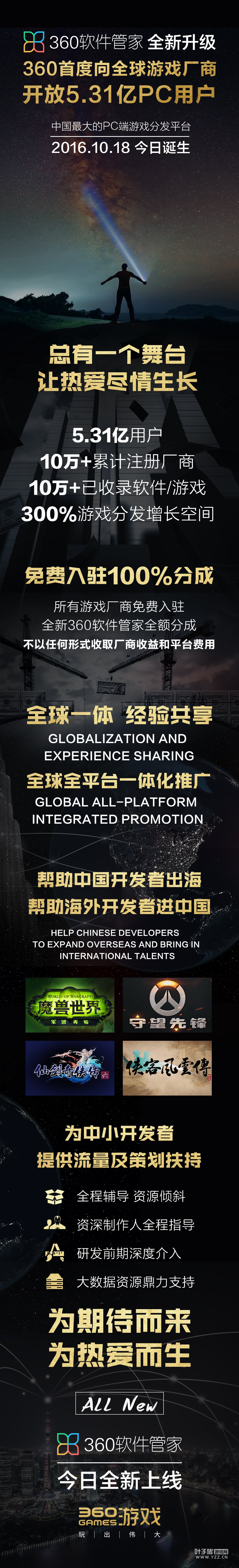 今日,备受国内游戏开发商关注的360软件管家全新升级。作为游戏开发商的又一福利,吸引了业内不少媒体与开放商的关注。 谈到PC游戏,这不仅让小编想到目前国内端游分发市场鱼龙混杂此消彼长,而且PC游戏下载环境不容乐观,想必有不少玩家都体验过下载的游戏是假冒软件,导致电脑安全受到威胁的问题。此次360全新升级的360软件管家,似乎最大程度上地解决此用户痛点。此外,面对以国内用户付费意愿和品质需求增强、现有游戏分发占比低导致市场潜力巨大、国内中小开发者缺乏展示分享平台,游戏娱乐成为PC应用的重要方向等现象的市场大环境下,360软件管家似乎有独自一人单挑大梁意思,不仅升级软件管家还颁布一系列数据、政策、扶持计划,旨在为中国PC游戏发展贡献自己的力量。 据360官方数据显示,360 PC端产品和服务用户总数高达5.31亿,市场渗透率为96.6%,其中360软件管家已累计提供超300亿次下载,已有超过10万注册厂商入驻平台。从这些数据来看,此次的全新升级似乎不是心血来潮,而是早有“预谋”的一次发布。 从政策上来看,360游戏发布的“免费入驻+100%分成”、“端游多元服务单机游戏快速服务通道”、“360游戏策划中心全程辅导”、“全球全平台一体化服务”、“全面开放360软件管家资源”五大游戏开发者政策,旨在全力扶持中国PC游戏开发者,强化中国PC游戏研发实力与发行实力。 从功能来看, 360软件管家此次聚合PC端和移动端应用下载、接入、开发者服务、厂商开放的功能,提供从产品提交、审核、测试到最终商业化都已完成一站式游戏服务,为开发商与用户建立起完整的沟通桥梁。 无论是从外部环境还是内部环境,无论是从服务还是政策,360软件管家好像做好了一切,准备来一场全新演绎。可预见的是,此次360软件管家的上线势必给PC游戏领域带来革命性的变化。对外,360软件管家能轻松解决国内游戏出海难题,让越来越多的中国游戏亮剑世界舞台并大放异彩;对内,360软件管家将作为国内用户购买海外游戏的一个便利的渠道,同时加强支付安全性和便捷性。对内对外,双管齐下,一同解决开发商与玩家之间的难题。 |