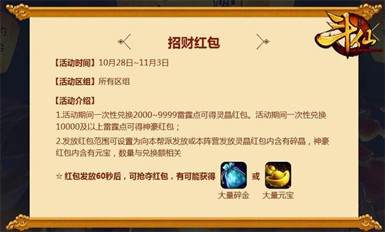 《斗仙》全新资料片“圣婴传说”在今日全面开启啦!为了迎接本次资料片“圣婴传说”的到来,我们为仙友们精心准备了六大新版本活动,万元现金、iPhone 7 Plus、京东卡、海量游戏道具,奖励多的让你拿到手软,还在等什么?赶紧进入游戏开抢吧! 金秋岁月 壕礼相赠 在活动期间,满足要求的仙友只要开启25等级段的预约礼包,即可获得一个金秋岁月礼盒,并且在每日晚间固定时间段登录的仙友能够再次获得一个礼盒;只要在规定时间内开启,就有机会获得海量商城道具、橙色装备和京东卡,甚至里面还包含iPhone 7 Plus大奖噢! 目标达成 天降宝盒 活动期间,全区组30级以上的玩家在每日第一次登录、第一次参与战场和第一次完成个人押镖时,皆可以获得宝盒奖励;另外,新区玩家只要在活动期间升级到相应等级,还能够再多次获得宝盒噢!开启宝盒就有各种游戏道具、京东卡等壕礼相赠! 世界BOSS 玄玉玉匣 在本次资料片新开放的区组中,活动期间每晚21:00,两名世界BOSS将准时降临妖野蛮彊之地,届时,所有仙友皆可参与BOSS战斗。并且,在击杀BOSS之后,参与的仙友将共同分享大量的经验和修为奖励。另外,在世界BOSS死亡时,还将掉落丰厚的道具奖励,还包含有价值不菲的玄玉玉匣,不过这一次的奖励将只属于拥有BOSS归属权的团队成员噢! 招财红包 元宝碎晶 在活动时间内,仙友们可以将自己手中的雷霆点数兑换成红包,并且,一次性兑换2000~9999雷霆点可得灵晶红包,一次性兑换10000及以上雷霆点可得神豪红包。灵晶红包可以拆出大量灵晶,神豪红包则可以拆出大量元宝。具体数额将由仙友们兑换的雷霆点数决定。另外,仙友们兑换了红包之后,除开可以自己拆开之外,还可以将红包发给自己帮派或者与自己同一阵营的仙友噢。 元老之力 荣誉称号 只要在一定时间内,没有登陆游戏降临在洪荒大陆的仙友,将成为斗仙时间中的老玩家。在本次活动中,满足条件的老玩家们只要在新区创建角色,就可以自动获取“仙界元老”称号。并且,该称号还可以为仙友们提供荣誉增加20%、获得碎晶增加10%、增加20%斗气转化的斗魂值的效果加成。 帮派争霸 积分奖励 在新开放的区组中,所有不低于2级的帮派成员皆可参与本次活动。届时,仙友们只要参与各项活动或者充值,都将获得数量不等的帮派积分奖励,并将以帮派为单位在“霸主积分榜”上进行展示。并且在活动结束时,榜上排名前21名的所有帮派都将获得现金大奖!另外,我们还为仙友们准备了每周结算的活跃奖励。活动期间,我们会在每周一根据本服帮派上周活动积分排名,给予帮派的帮众高额元宝以及斗气奖励、并给予帮主高额的现金奖励。 关于《斗仙》: 《斗仙》是由厦门吉比特旗下雷霆游戏耗资千万打造的3D仙侠自由PK网游巨作。游戏运用自主研发的Avatar游戏编辑器,在延续前代专注多元战斗、PK竞技为核心理念的基础上,更加入了集休闲养成与对战交互于一体的家园系统等丰富内容,全面实现了具有多元玩法、自由个性、公平竞技和超大场面的游戏架构。战斗大场面,PK更自由,《斗仙2》等你来战! 《斗仙》官方微信公众号:“斗仙” 《斗仙》官网:http://pk.leiting.com/ 《斗仙》论坛:http://bbs.leiting.com/forum-102-1.html 《斗仙》账号注册:http://account.leiting.com/terrace/account/register_phone.html 《斗仙》客户端下载:http://pk.leiting.com/game/download.php 了解更多相关信息,请前往http://dx.yzz.cn/ |