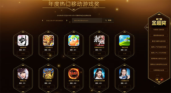 2016年金趣奖年度移动游戏评选 玩家投票全面开启