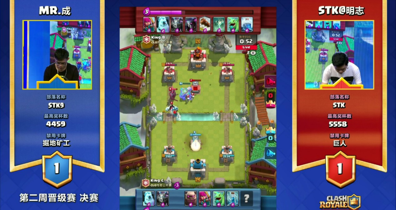经过上周末的激烈厮杀,《皇室战争》传奇公开赛CD组8人对决尘埃落定。来自STK战队的明志和MR.成两位老将携手出线,向总决赛发起冲击,明志更是凭借灵活多样的卡组套路夺得第二周比赛的周冠军! 在周日的周冠军争夺战中,明志起初出师不利,被MR.成的骷髅召唤打得措手不及,以0:3的成绩惨淡收场,掉入败者组。之后,明志扛住压力,接连打败久宝宝和三千世界,并与MR.成再次相遇,在冠军争夺战中完成复仇反杀! 明志与MR.成的冠军争夺战是本周赛事的绝对焦点。在第一局里,明志摸出地狱飞龙吹响进攻号角。针对MR.成的石头人,明志利用骷髅墓碑巧妙转移其注意力,并转而攻打国王塔,保住了残血的公主塔,并利用滚木拖住石头人进攻的节奏,依靠雷电法术完成反杀。明志拿下第一局。 在第二局对决中,MR.成开始反扑。虽然明志的雷电法术完美开局抢占了比赛节奏,但在石头人互拆、双方公主塔进入斩杀线时,MR.成夺得先机,扳回一局。 针对MR.成惯用的石头人流,明志在第三局祭出了大皮卡加以制裁。石头人在大皮卡的威力大刀下节节败退,明志乘胜追击,利用雷电法术清理对方的其他上场兵种,毫不给MR.成喘息的机会。MR.成及时调整,利用骷髅墓碑和冰巨人完成了对大皮卡的轮番遛狗表演,但为时已晚,被明志拿下残血的公主塔,明志再胜一局。 明志越战越勇,在第四局对战里,进一步展示了自己对于卡池的深厚理解,出其不意拿出了赛场上罕见的“野猪骑士加野蛮人”的速推套路,MR.成节奏全乱,明志以3:1的成绩,拿下第二周周冠军! 至此,《皇室战争》传奇公开赛周赛已经进行过半,官方邀请的四位种子选手(Yaya520、Aaron、MR.成、XUAN)受到强烈冲击,仅剩下MR.成进入最后的总决赛。新生力量的奋起直追,明星老将的荣誉争夺,令本次传奇公开赛精彩纷呈。在接下来的两周时间,传奇公开赛将完成剩余四组的对决,仅有四名选手能从接下来的比赛里脱颖而出,进军总决赛。最终鹿死谁手,让我们拭目以待! 关于《皇室战争》传奇公开赛: 《皇室战争》传奇公开赛是由Supercell主办,继上海锦标赛之后第二个落地中国的官方赛事。赛事于2016年10月10日—12月4日期间进行。比赛分为线上赛、线下赛和总决赛三个阶段。线上赛最多1024名选手参加;线下赛由24名线上赛优胜者以及官方从各大赛事的优秀选手中挑选的8位种子选手进行比拼;最终名列前茅的8名选手晋级最终的线下决赛,争夺传奇公开赛的冠军和高达15万元的赛事总奖金。 |