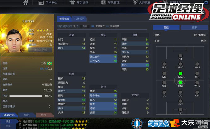 虽然说后腰这个位置的球员非常多,但是真正实用起来的也就那么几个。在上一期的文章中,我们给大家介绍了现役《足球经理ONLINE》中的几个神级后腰,这一期我们继续来说后腰这个位置,神级之后的球员都有哪些呢? 首先我们来说说4.3的马尔基西奥,30岁的意大利人无疑是这个阶段上的后腰一哥。如果不是年龄的问题,小马哥绝对是神级后腰中的一员。 属性方面,马尔基西奥拥有0.5的CA空间可供分配,各项属性也是比较均衡。自己曾经模拟过小马哥,在这个阶段是为数不多的几个能将防守6项属性全部撸到18的球员之一。 说完了意大利的小马,我们来说说阿根廷人马斯切拉诺。相比较前者来说,后者的初始无疑更好,但是劣势同样在年龄。 如果只看初始属性的话,那么阿根廷人无疑是神级后腰中的一名,但是其五个习惯以及身高都成为了阻碍他的关键因素。我们在入手,满足防守全18之后,其他属性投入到身体即可。 最后我们来说说皇马球星卡塞米罗,也是今天推荐的三个球员中唯一一个比较年轻的球员,只有24岁。上个版本中卡塞米罗只有4.0的CA,这次新版本更新后4.2的CA空间无疑大大增加了其竞争力。 属性方面,卡塞米罗0.6的CA空间给了我们足够的发挥空间。在DM这个位置上,不管是抢球型的中场还是防守型的后腰,卡塞米罗都能完美胜任。 |