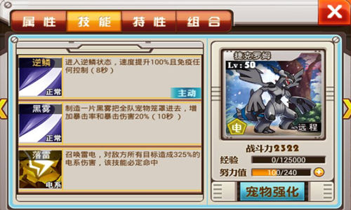 黑白双神震撼来袭!《宠物小精灵》官方版前不久更新两只全新的神兽。黑神捷克罗姆,白神雷西拉姆,这两只神兽在口袋精灵剧场版黑白中首次登场就给玩家留下了深刻的映像。相信在游戏中它们的表现更是能让所有玩家眼前一亮! 【黑神-捷克罗姆】 捷克罗姆为龙系和电系的传说中的小精灵。特性兆级电压,在使用技能时不受目标特性影响。在游戏中,捷克罗姆的技能为逆鳞:速度提升100%且免疫任何控制(8秒);黑雾:黑雾把全队笼罩,增加暴击率和暴击伤害20%(10秒);落雷:对所有敌方造成325%电系伤害,必定命中。 【白神-雷希拉姆】 雷希拉姆是龙系和炎系的传说中的小精灵。特性涡轮高温,在使用技能时不受目标特性影响。在游戏中,雷希拉姆的技能为天龙流行:对所有目标造成335%龙系伤害并且眩晕,技能无视防御;白雾:白雾把全队笼罩,增加闪避了20%(10秒);青炎:对所有目标造成325%火系伤害并且打断施放。 黑白双神展现超凡实力!传说中的小精灵等你来捕获,让你成为最强小精灵训练师。《宠物小精灵》在线GBA时代经典,让你重温儿时回忆,一起在这个小精灵的世界中冒险吧! 《宠物小精灵官方版》官方网站:http://xjl.91you.com 《宠物小精灵官方版》官方微信:宠物小精灵手游(微信号:XJLPLAY) 搜索公众账号“宠物小精灵手游”或者微信扫一扫 宠物小精灵微信现在更有微信独家礼包! 微博链接:http://weibo.com/u/5260967629 |