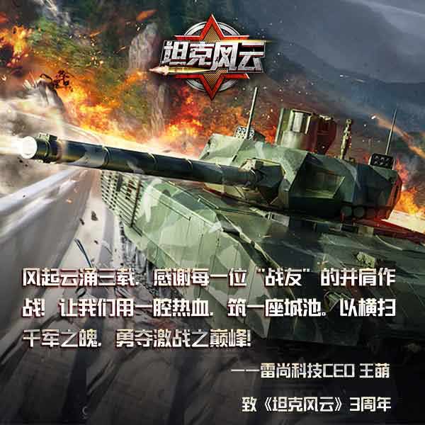 2013年11月23日,伴随着缤纷的雪花,《坦克风云》正式与大家见面。我们致力于将《坦克风云》打造成全世界军迷玩家最热爱的游戏,将我们的军事游戏文化向全球输出!转眼三年已过,《坦克风云》也迎来了三周岁的生日!在这个喜庆祥和的日子里,我们准备了“百万豪礼”以海量福利来回馈这些年与我们风雨同舟的玩家朋友。现在《坦克风云》诚邀您共同举杯,来一场福利满满的狂欢盛宴! 《坦克风云》三周年到来之际,我们也向《坦克风云》的合作伙伴以及所有热爱《坦克风云》的玩家朋友们展示一下我们一路走来的成绩。 《坦克风云》能取得这样的成绩与所有玩家朋友的大力支持是分不开的,借这次机会《坦克风云》游戏研发商雷尚科技的CEO王萌先生也准备了自己对所有支持《坦克风云》的广大玩家朋友们想说的一些感言。 《坦克风云》三周年,福利肯定是少不了的,值此三周年期间,我们为大家准备了海量福利,只要您是长久以来支持我们的老玩家,我们将赠送您多重好礼,助您在战场中无往不利! 战友集结令 老战友集结行动已经开始,诚邀战友回归同心携手尽享回归大礼! 活动期间,个人等级达到20级及以上的指挥官登陆游戏即可获得 “感恩有你礼包”! 活动期间,超过7日未登陆游戏的老玩家回归可获得 “回家礼包”! 活动期间分享邀请码,成功召回战友的指挥官可获得“战友集结礼包”! 活动期间,响应集结的老玩家进行充值,集结玩家与响应集结老玩家均可获得超值礼包! 二次授勋 《坦克风云》三周年之际,特开放将领二次授勋系统,助力老玩家在今后的战斗中再创佳绩!授勋成功后,将领品质提升至6星,属性大幅度提升,并额外增加一个受勋技能,提升很大,玩法上更加丰富多元化。 活动力度远大于此,更多福利尽在《坦克风云》!活动期间快快登陆游戏领取您的奖励吧! 《坦克风云》风风雨雨一路走到现在,每一次小版本更新,每次一大版本迭代,我们用我们全部的热情,致力于为所有玩家打造一个稳定有爱的《坦克风云》。有你们的支持,我们才能一步又一步的走下去。硝烟战火三余载,在此向所有支持《坦克风云》的玩家致敬!谢谢你们,希望我们在今后的岁月中不离不弃,一路高歌的走下去! 《坦克风云》是一款由雷尚科技开发的全球首款坦克题材SLG手游; 这里有辽阔的战场,能够容纳成千上万只装甲集团军在这里纵横拼杀;这里汇聚了古今中外战场上各式威名赫赫的主战坦克,能够让您组建一支前所未有的强大陆战之师;这里集中了最具现代化科学技术与高效装甲部队相结合,能够让您体验到现代化科技战争的无穷魅力;而这一切,只要您动动手指,即可体验“弹指间,樯橹灰飞烟灭”的快感! 游戏官网:http://tk.rayjoy.com/ 新浪微博:http://weibo.com/p/1006066025768563 官方微信订阅号:坦克风云 |